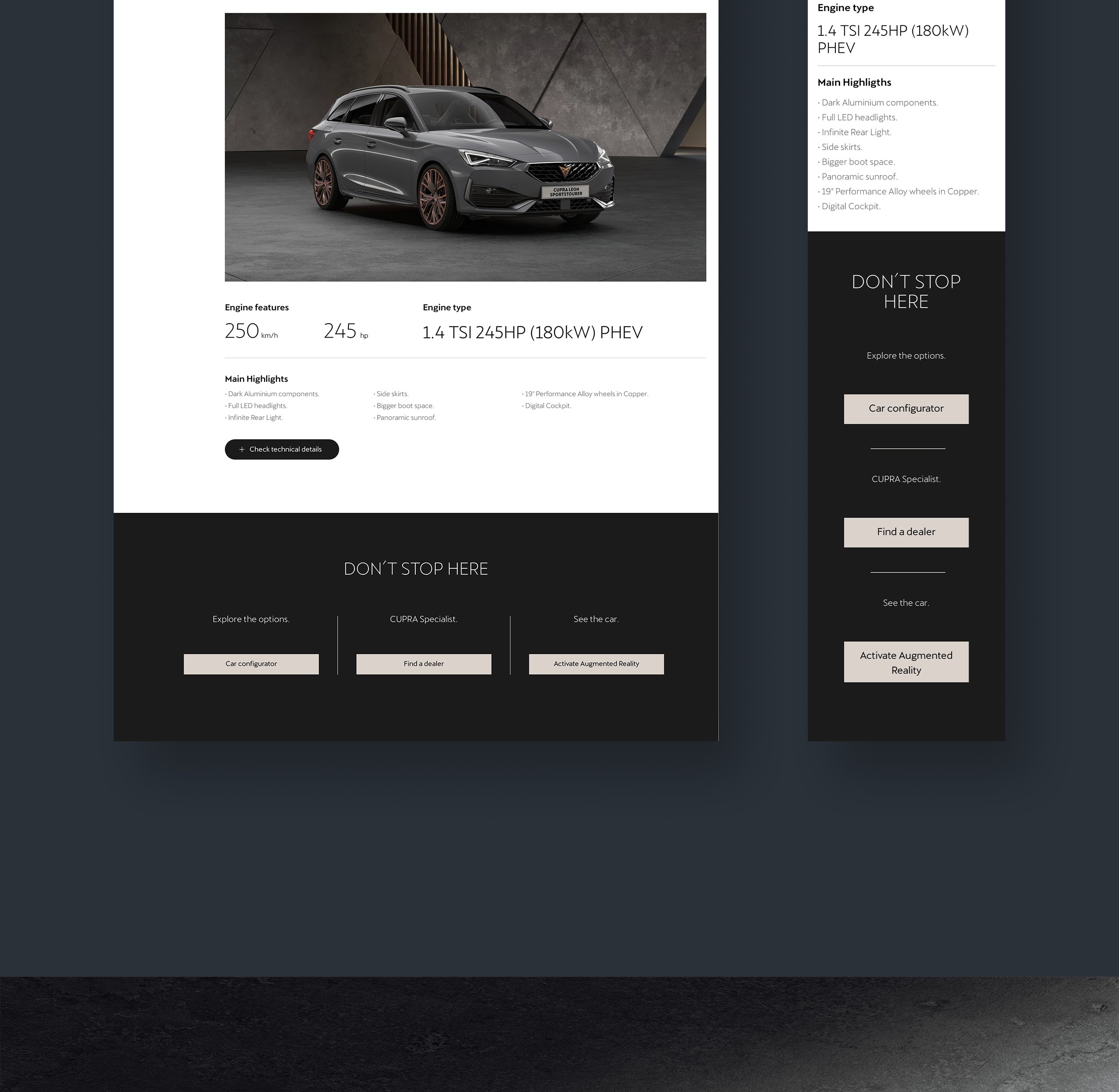 CUPRA's global site needed to go beyond a product showcase and become a genuine brand statement. The challenge was to translate a young, provocative, and design-obsessed brand into a digital experience that could feel both premium and raw — distinctive enough to stand on its own, without falling into the conventions of traditional automotive web design, while remaining clear and functional across multiple international markets.